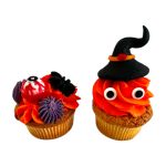 Cupcakes pufoase și delicioase, decorate în stil Halloween cu dovleci, fantome și păianjeni. Cu glazură vibrantă și detalii spooky, sunt perfecte pentru a aduce un strop de magie înfricoșătoare și dulce la orice petrecere!