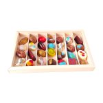Cutie cu 28 praline cu ciocolata alba si neagra si umplutura cu infuzie de fructe ( portocale, mango, limoncello, zmeura, mure, busuioc), un cadou ideal atat pentru cei dragi, cat si pentru partenerii de afaceri sau colegii de birou.