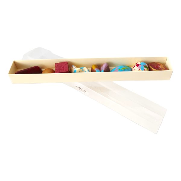 Cutie cu 8 praline cu ciocolata alba si neagra si umplutura cu infuzie de fructe (portocale, mango, limoncello, zmeura, mure, busuioc), un cadou ideal atat pentru cei dragi, cat si pentru partenerii de afaceri sau colegii de birou.