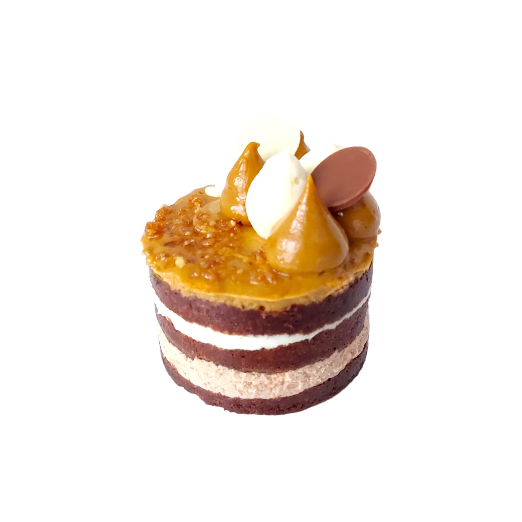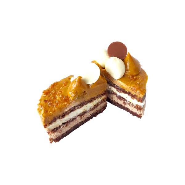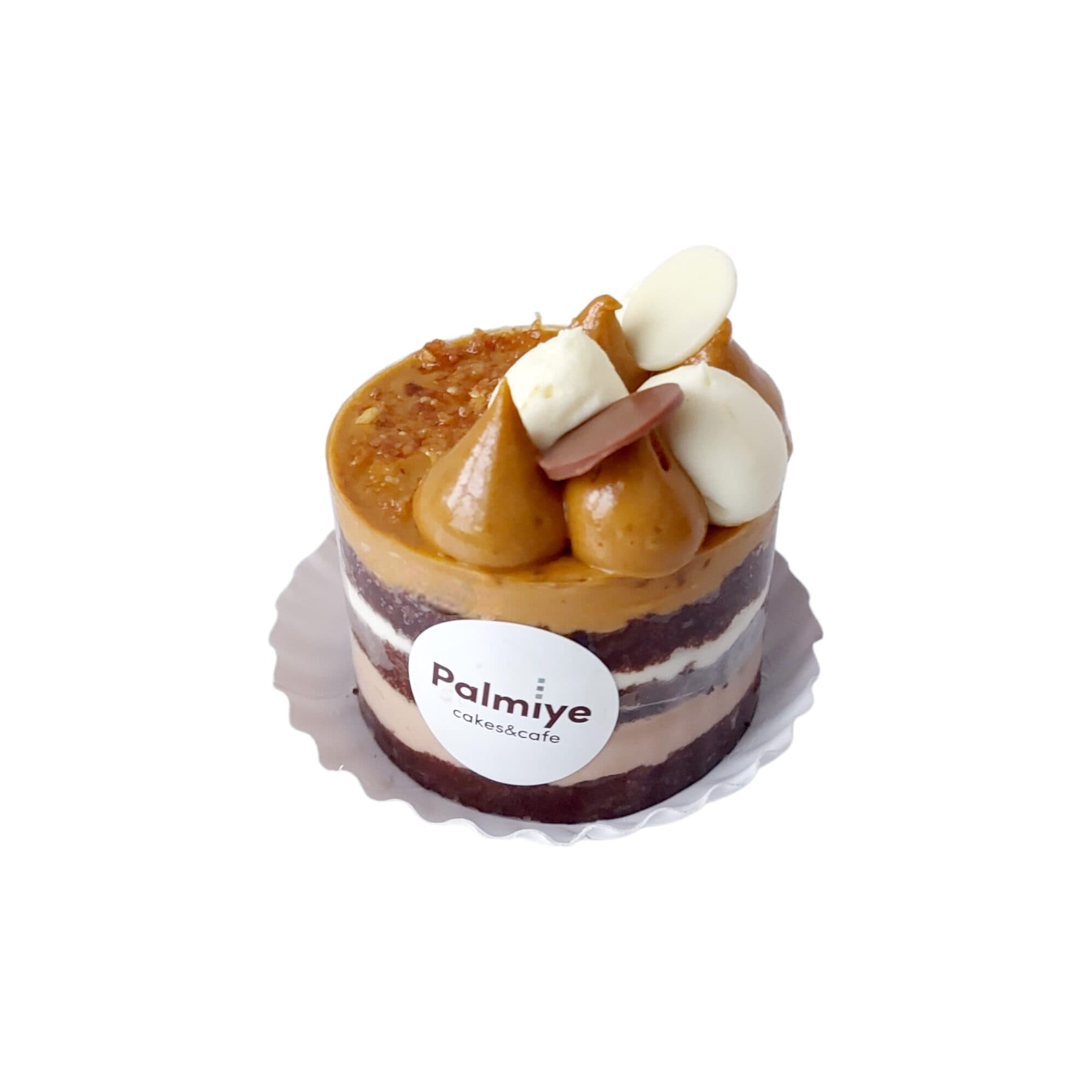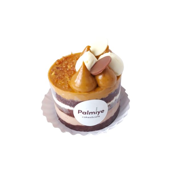 Palmiye: blat cacao insiropat, mousse ciocolata cu lapte, crema vanilie si brandy plus un top de mousse caramel, cateva bobite de krantz si multa ciocolata.