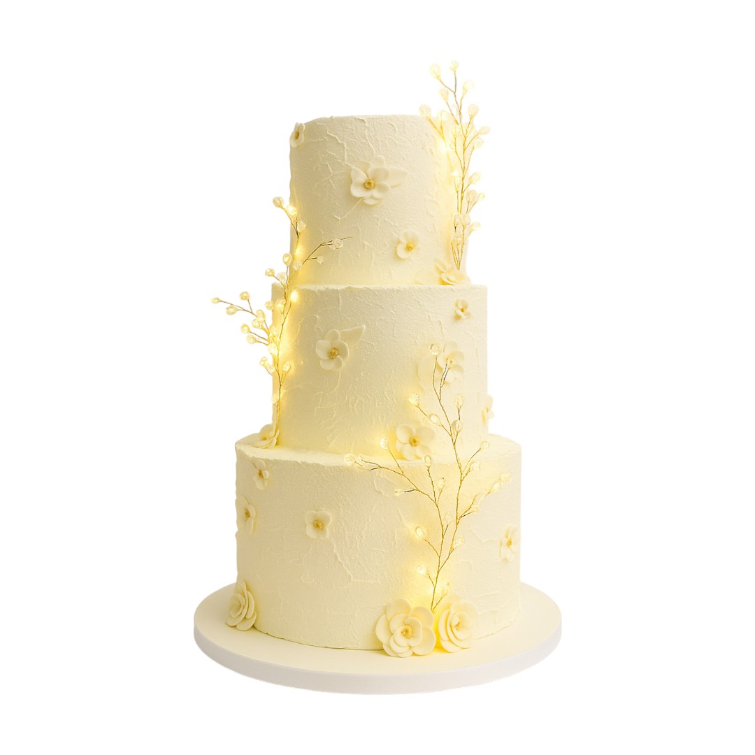 Un tort couture care surprinde frumusețea unei aurore: nuanțe calde, reflexii fine și flori ce par atinse de primele raze ale soarelui. Texturile catifelate și detaliile florale sculptate manual transformă fiecare strat într-o declarație de eleganță pură.