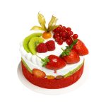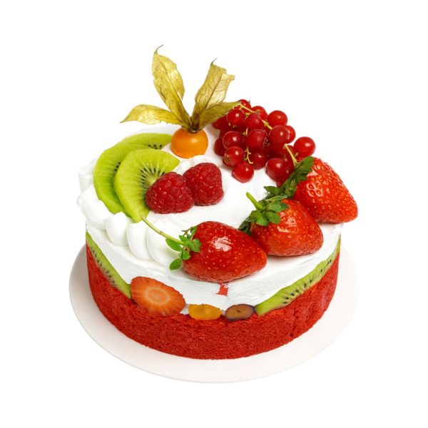 O culoare superba – catifea rosie – rezultata din straturile pufoase din blat de vanilie, cu frisca vegetala crema fara proteina animala si mix de fructe de padure si fructe de sezon proaspete. Fara oua si lapte. Un decor de fructe din belșug!